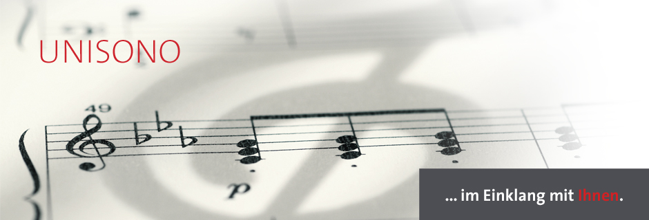 Der musikalische Begriff „unisono“ (italienisch „Einklang“) stand bei unserer Namensgebung Pate. Denn das Unisono beeindruckt durch große harmonische Klangentfaltung und starke Durchschlagskraft, da alle Mitwirkenden eines Chores oder Orchesters gemeinsam dieselbe Melodie singen oder spielen.